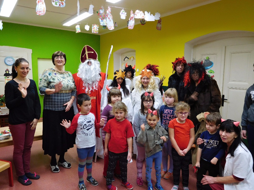 Dne 5.12.2017 naše děti navštívily nadpřirozené bytosti Mikuláš, andělé a čerti v podání žáků a učitelů z naší ZŠ P. Jilemnického pod vedením p. učitelky Ivety Kubíčkové. Děti si domů odnesly nejen velké zážitky, ale také balíčky s ovocem, sladkostmi a drobnými dárky. ZA SPONZORSKÉ DARY DĚKUJEME RODIČŮM A ZAMĚSTNANCŮM MŠ.